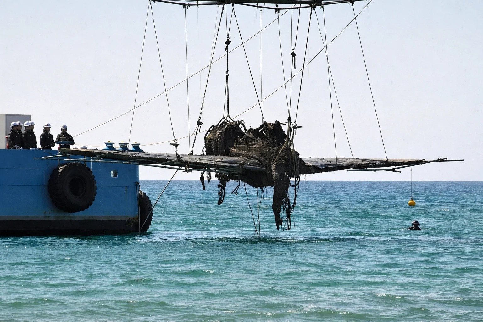 وقد بدأت عملية الانتشار صباح الأربعاء الماضي، حوالي الساعة 10 ونصف، حيث استخدم الفريق رافعة كبيرة لرفع أجزاء الطائرة واحدة تلو الأخرى ونقلها إلى عبارة النقل. وكانت أجنحة الطائرة لا تزال واضحة ومحددة المعالم رغم مرور أكثر من ثمانية عقود تحت الماء.