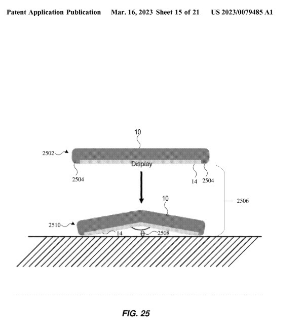 وتحمل براءة الاختراع، الموجودة حاليا على موقع الويب الخاص بمكتب الولايات المتحدة لبراءات الاختراع والعلامات التجارية USPTO، اسما طويلا جدا هو: “جهاز الشاشة الذاتية التراجع وتقنيات حماية الشاشة باستخدام اكتشاف السقوط”.
