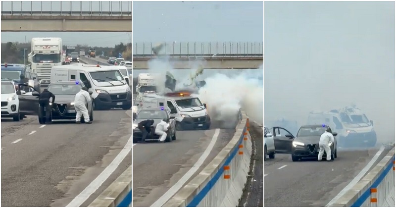العملية طالت مركبة مصفحة من نوع BTV على الطريق السريع SS 613 الرابط بين ليتشي وبرينديزي، قرب مخرج توتورانو بإقليم بوليا.ووفق ما نقلته وسائل إعلام إيطالية، pic.twitter.com/lw9U7Lyoph