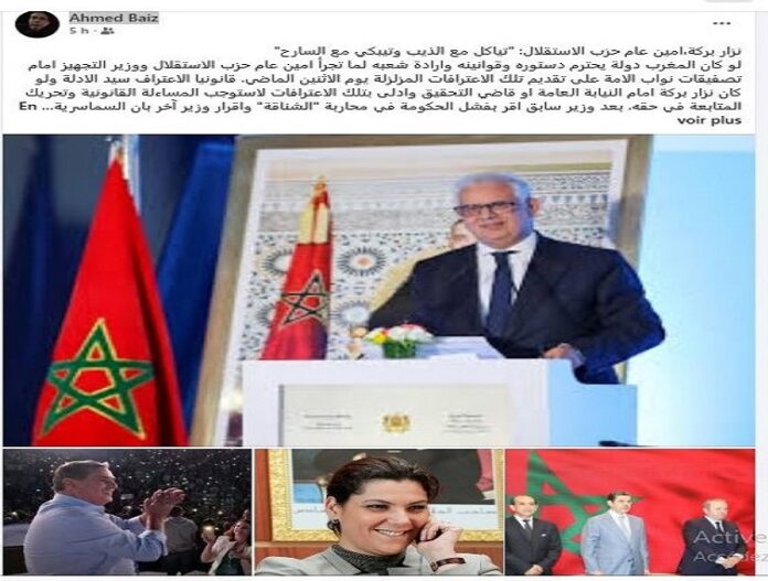 تدوينة اختارت أن تختزل موقفاً كاملاً في مثل شعبي مغربي حاد: “تياكل مع الذيب وتيبكي مع السارح”، موجّهة بشكل مباشر إلى نزار بركة، في سياق تصريحاته الأخيرة أمام نواب حزبه.