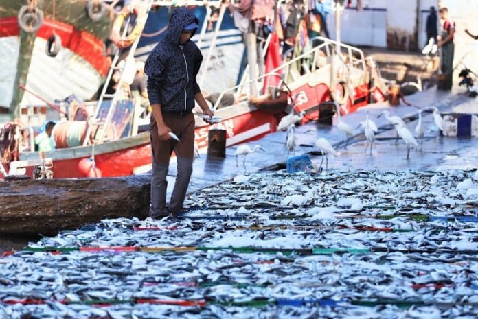 الأرقام الرسمية تشير إلى أن مصيد السردين تراجع بنحو 46 في المائة بين 2022 و2024. في منطق السيادة الغذائية، كان يفترض أن يؤدي هذا التراجع إلى إعطاء أولوية مطلقة للسوق الوطنية. لكن الواقع يسير في اتجاه آخر.